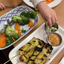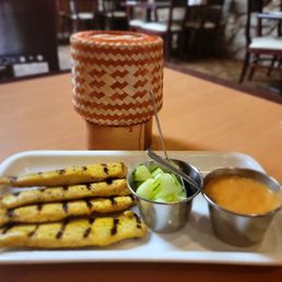 Great thai restaurant in downtown Grass Valley! They are located in the Alpa building on Main Street. I have included pictures of the entire menu. My favorite dish for when i am not very hungry is the Satay Chicken on skewers! It comes with a small cucumber and peanut sauce cups. SO delicious! I also had the sticky rice which was a nice side to go with the chicken. If you are hungry ORDER the lunch specials! Jasmin waited on me and she was sweet and accommodating. All the employees today were very friendly. The inside is decorated nicely with a beautiful brick wall. It smells so good when you walk inside! They serve beer and wine as well. Parking can be a bit of a challenge during peak times. They open at 1130 for lunch. I would recommend making a reservation on the weekends. Dine in or take out. Great experience with kind employees!