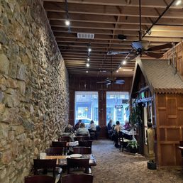 Service was friendly and good. Food was good. Portion sizes were on the lite side. My only beef was that the fresh rolls were highly priced at $13 but the portion size was quite small. Very nice restaurant. I usually don't comment or gush much about the inside but, it was pretty nice. I especially liked the huge ceilings and rock walls. Very popular place and recommended. If you want cabbage wedges with your Larbguy salad, just ask.