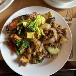 Adaptability! My partner and I dropped in at 8pm on a Friday after the 4th of July. Shortly after a party of 11, 7, and 4 were sat. Considering they closed at 9?! Way to go front and back house restaurant staff! They also had people picking up to go orders! Handled very well! I ordered the chicken pad Thai, my Mussanan Curry. Timely and delicious. A great date for us, thanks!